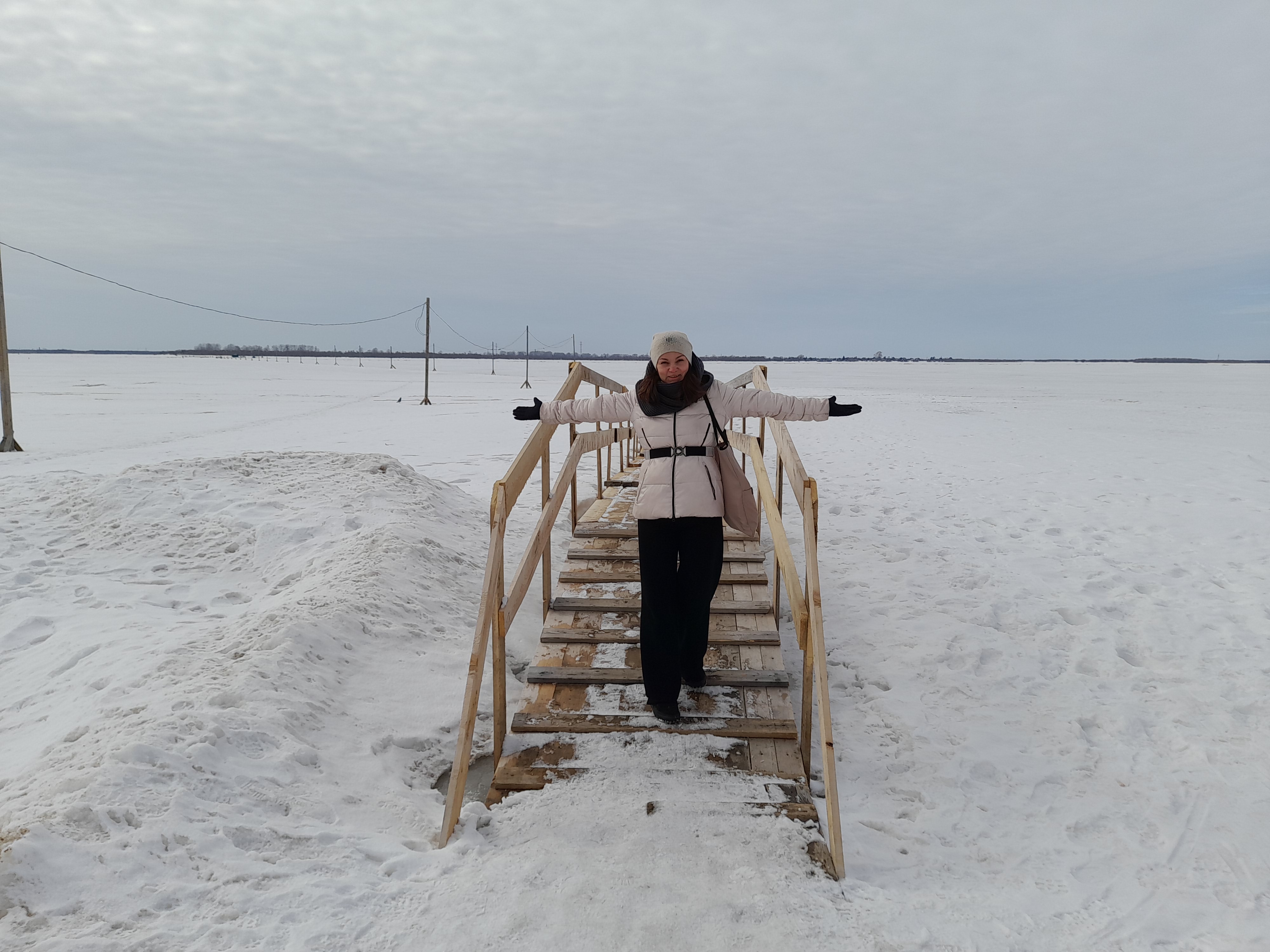 Это единственный способ добраться в город: вы ощутите весь спектр эмоций местных жителей, преодолевающих переправу по пути на работу и обратно. Увидите фарватер реки, который ежедневно расчищают ото льда, чтобы провести суда, а потом снова нагоняют лёд и кидают мостки, по которым сразу бегут островитяне.