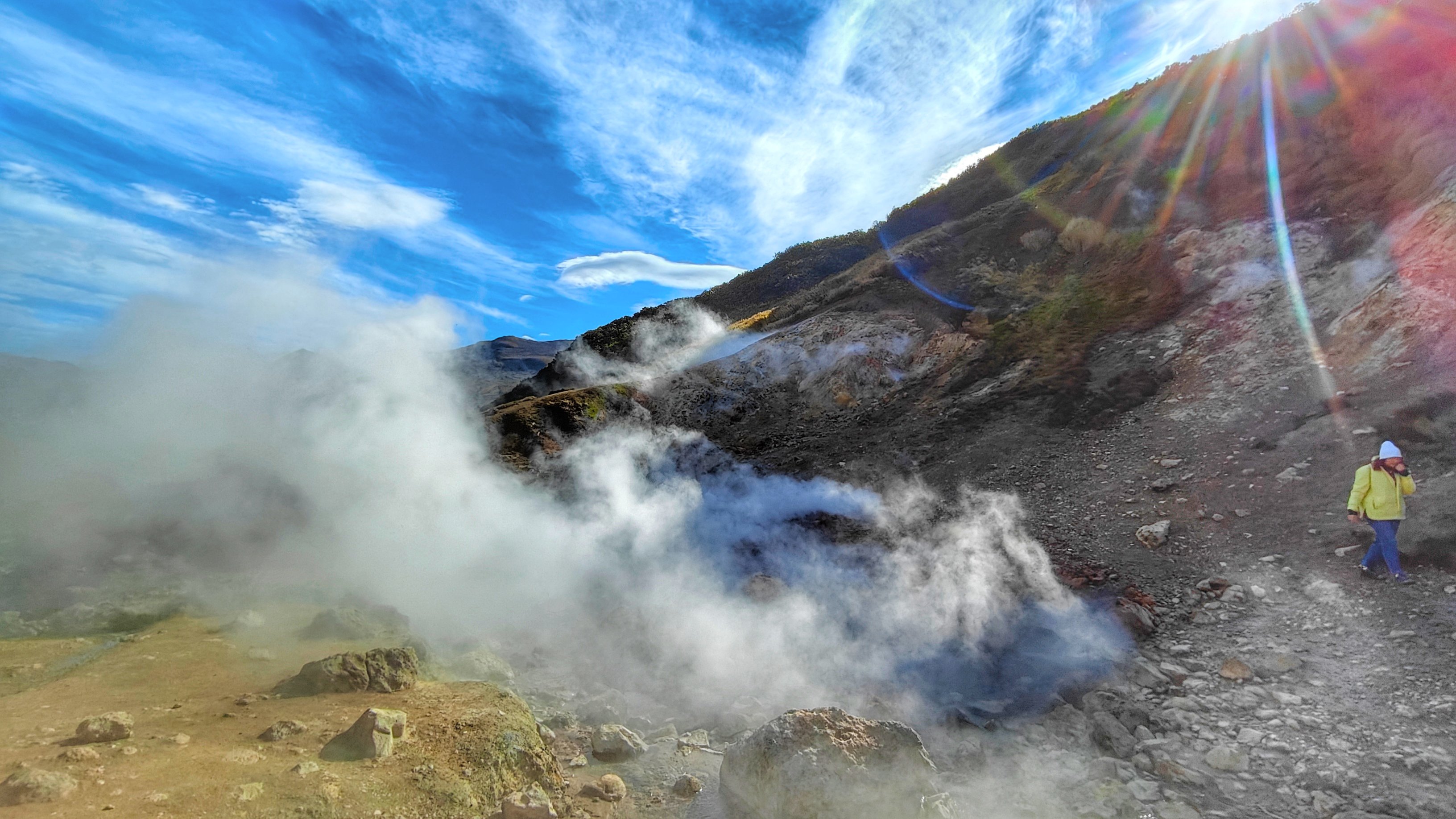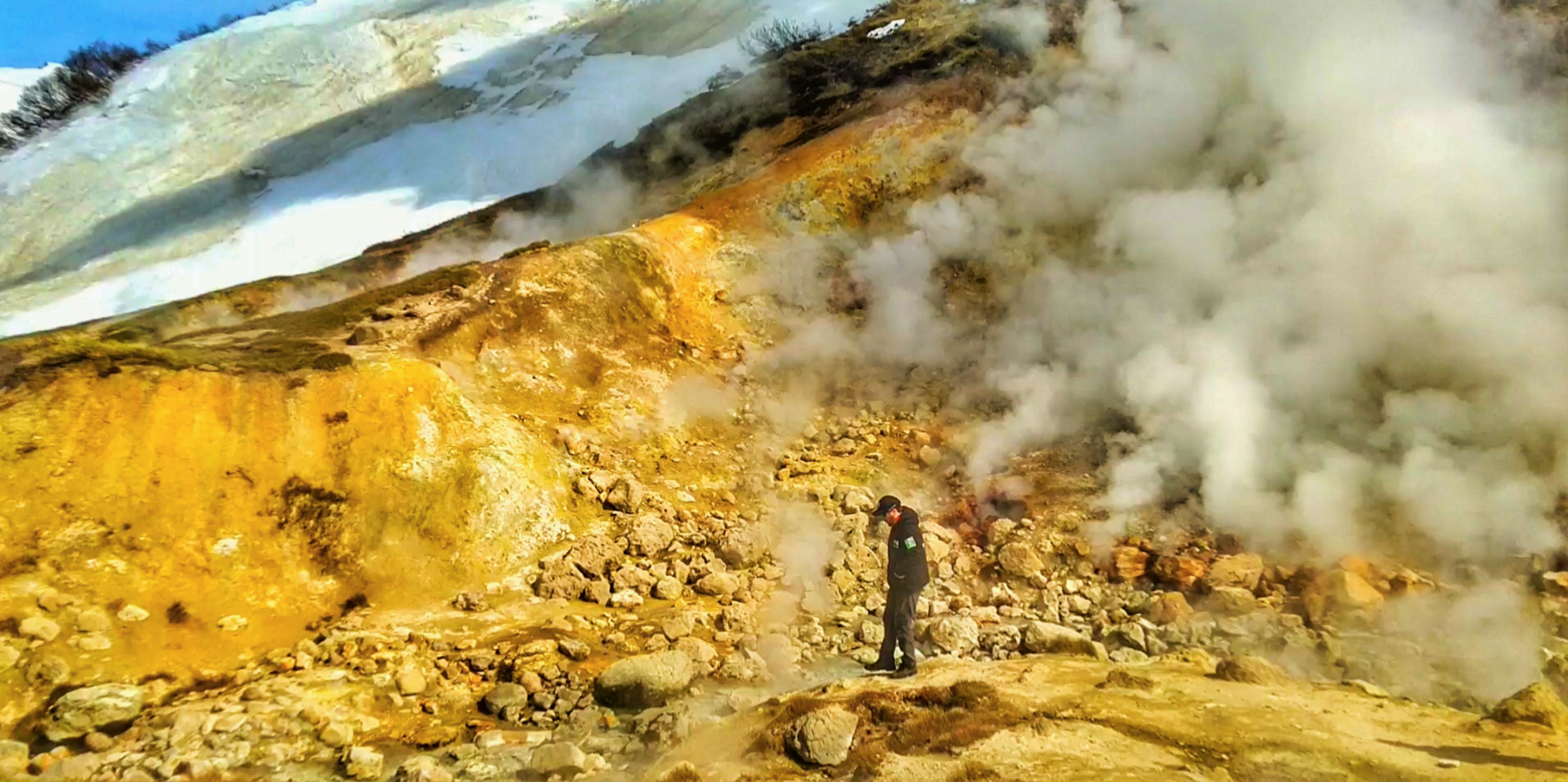 • Проедем к подножью Мутновского вулкана — мини-долине гейзеров, погуляем по фумарольным площадкам, почувствуем горячее дыхание земли