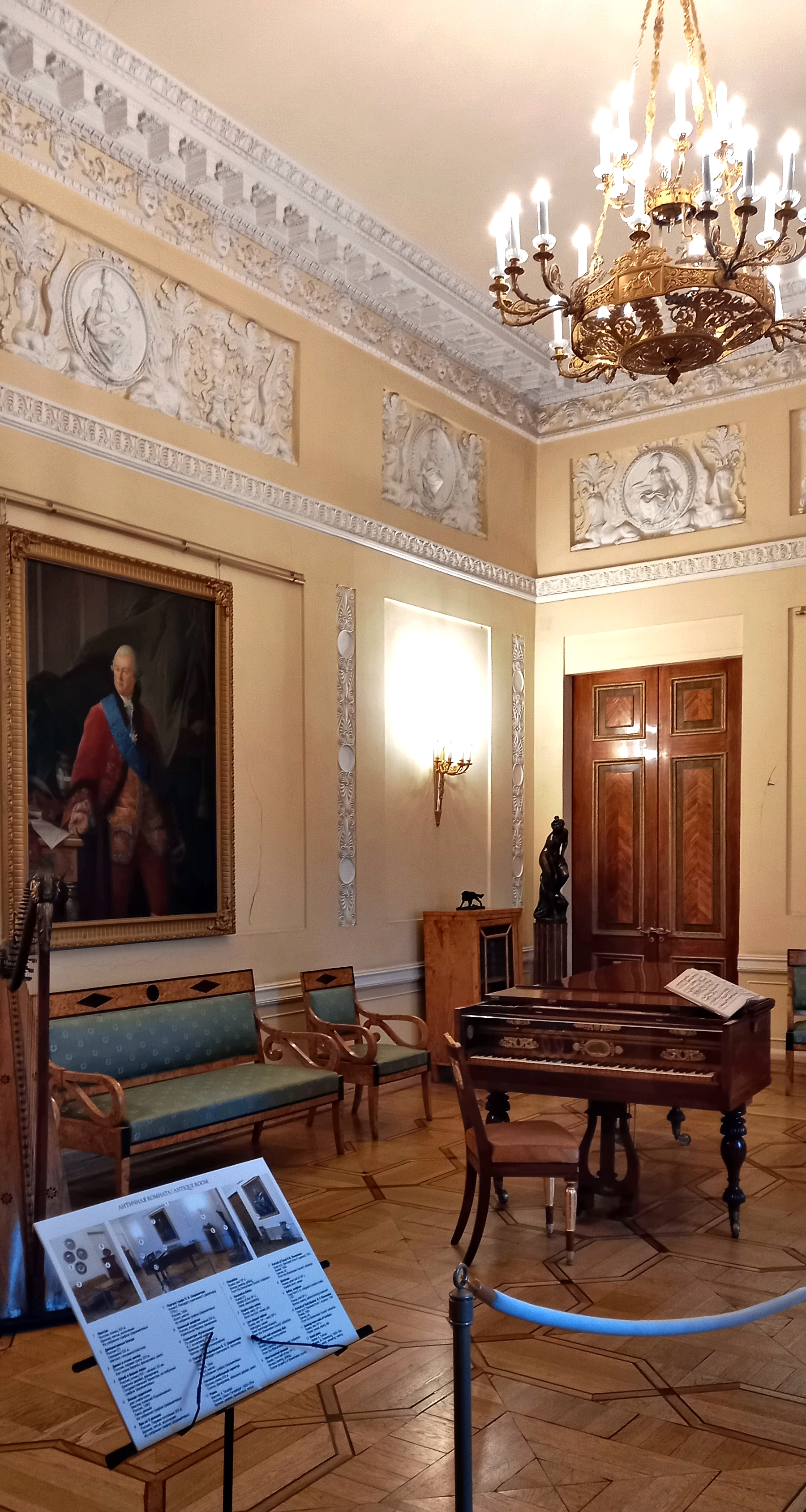 - Вы увидите залы, где принимали гостей и звучала классическая музыка. В Золотой гостиной воспроизведём музыкальный салон 19 века.