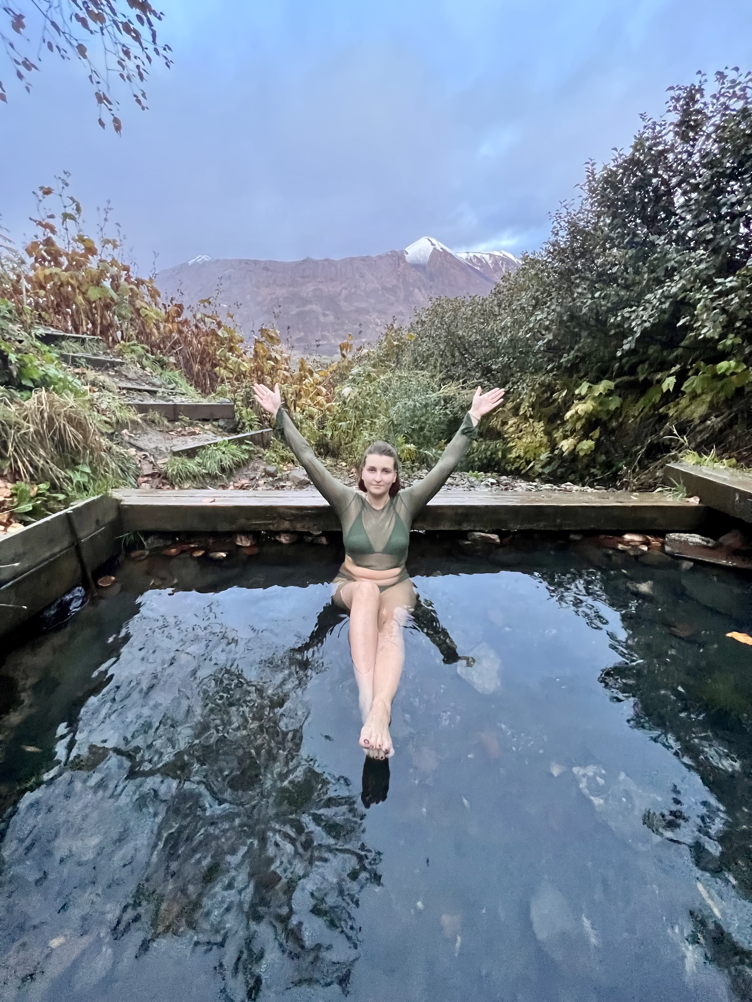 - На обратном пути заедем к диким термальным источникам, где вы сможете расслабиться после столь насыщенного дня. Заключительным аккордом путешествия станет вкусный обед с камчатскими деликатесами и видом на Вилючинский вулкан.