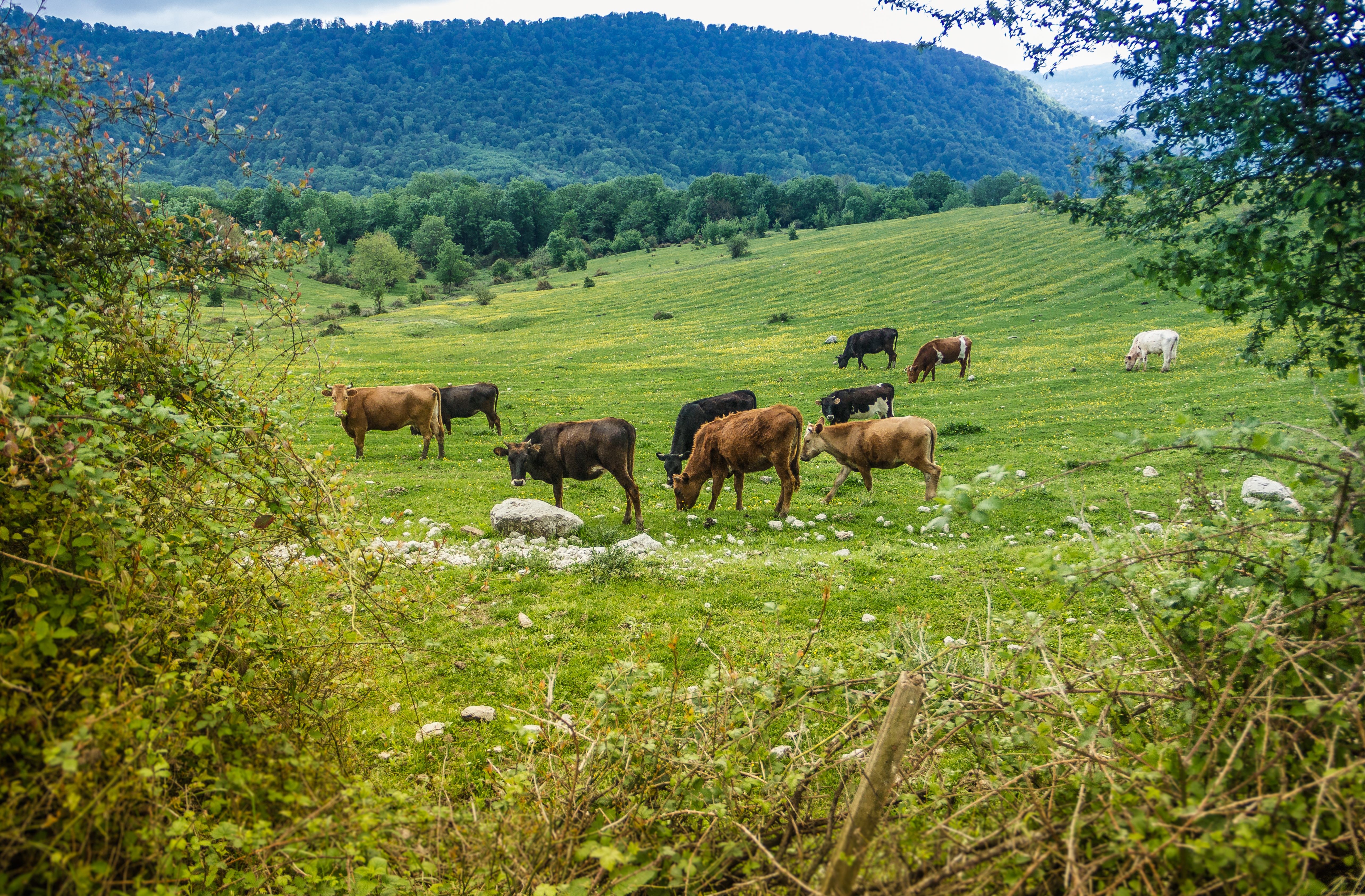 В середине пути мы выйдем на поля Дурнабела, где пасутся табуны лошадей, коров, буйволов, коз и свиней. По желанию под наблюдением гида вы сможете покормить животным фруктами. И полюбуетесь отличным видом на заснеженные горы Кавказа и причерноморские горы.