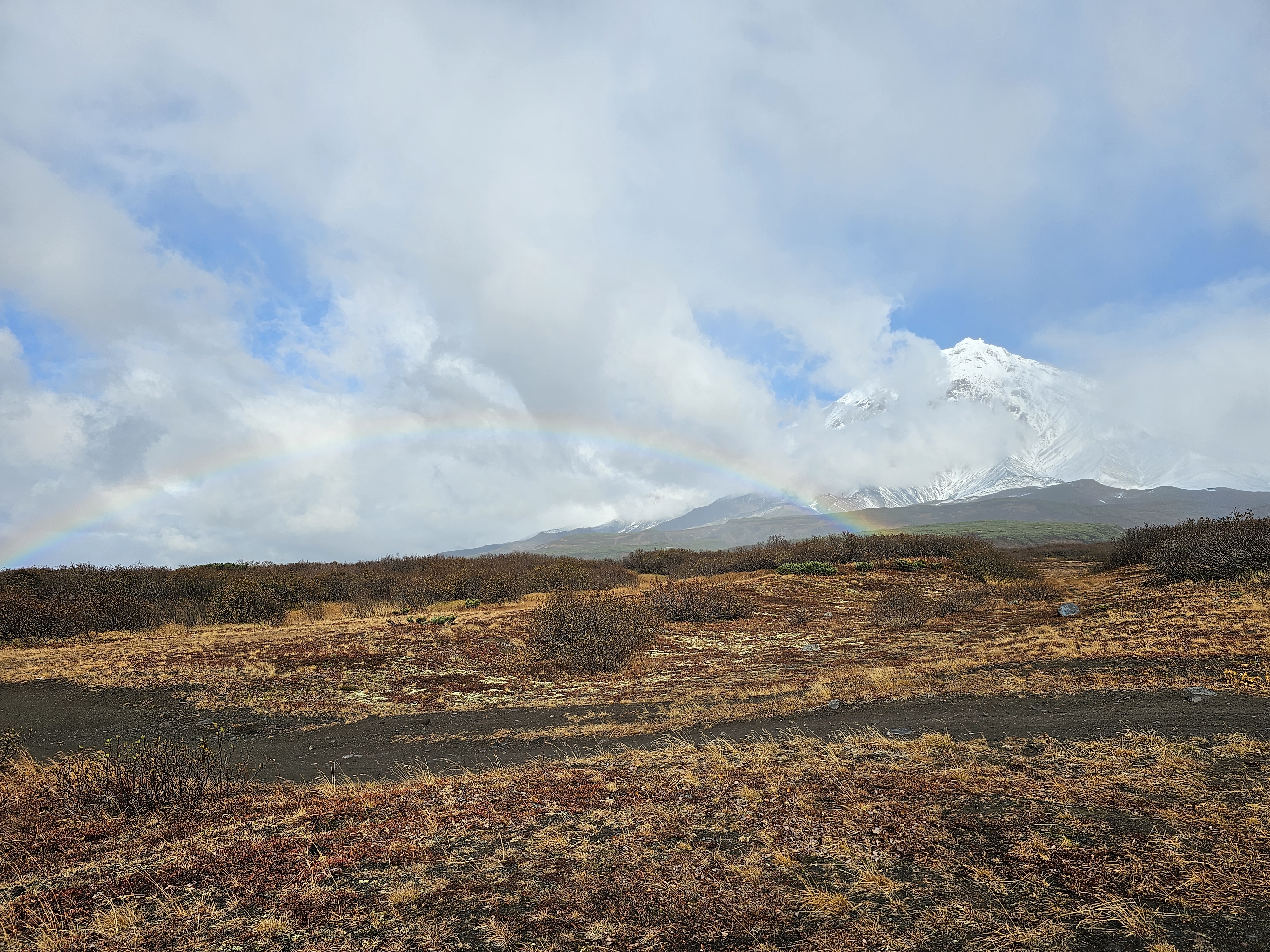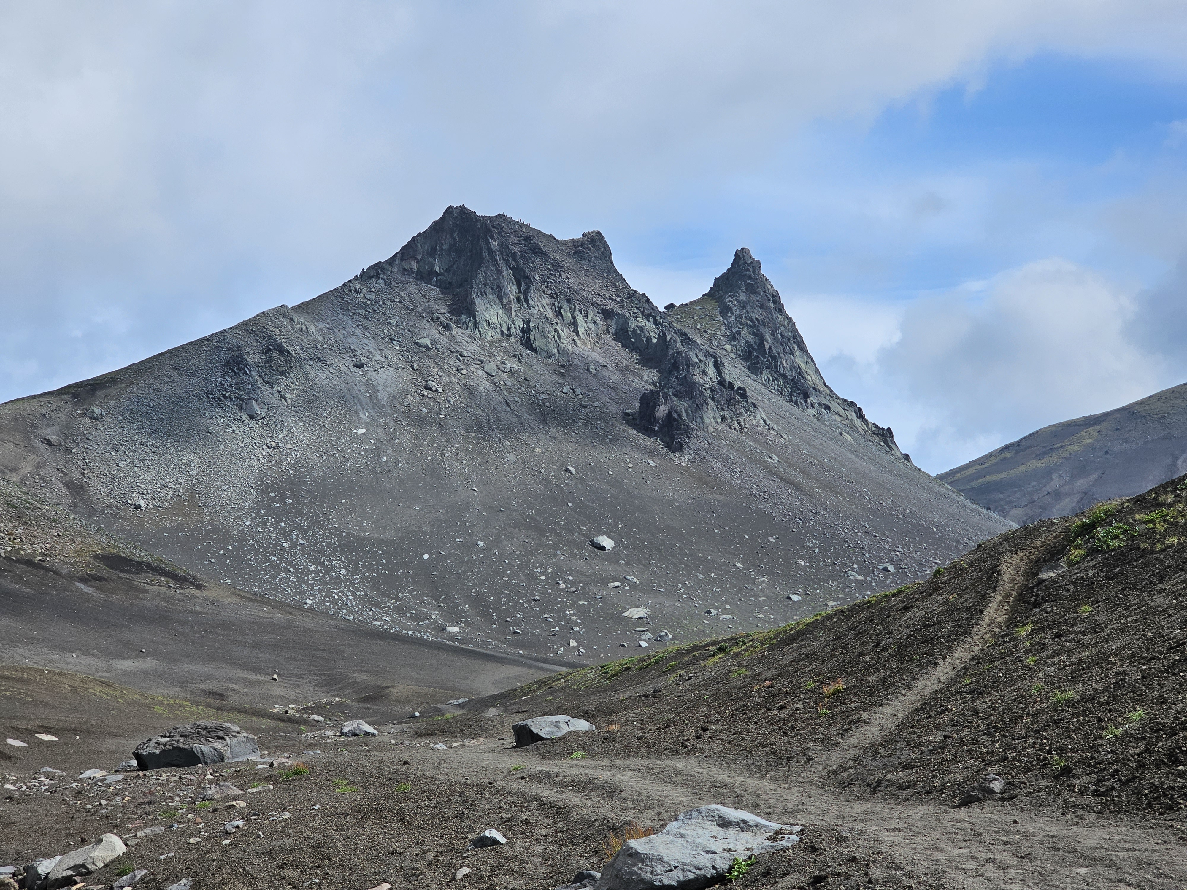 - Сухая речка. Движемся к подножию Авачинского вулкана. Смена растительности от лиственного леса до горной тундры. Поле каменных пирамид. Виды на Корякский и Авачинский вулканы