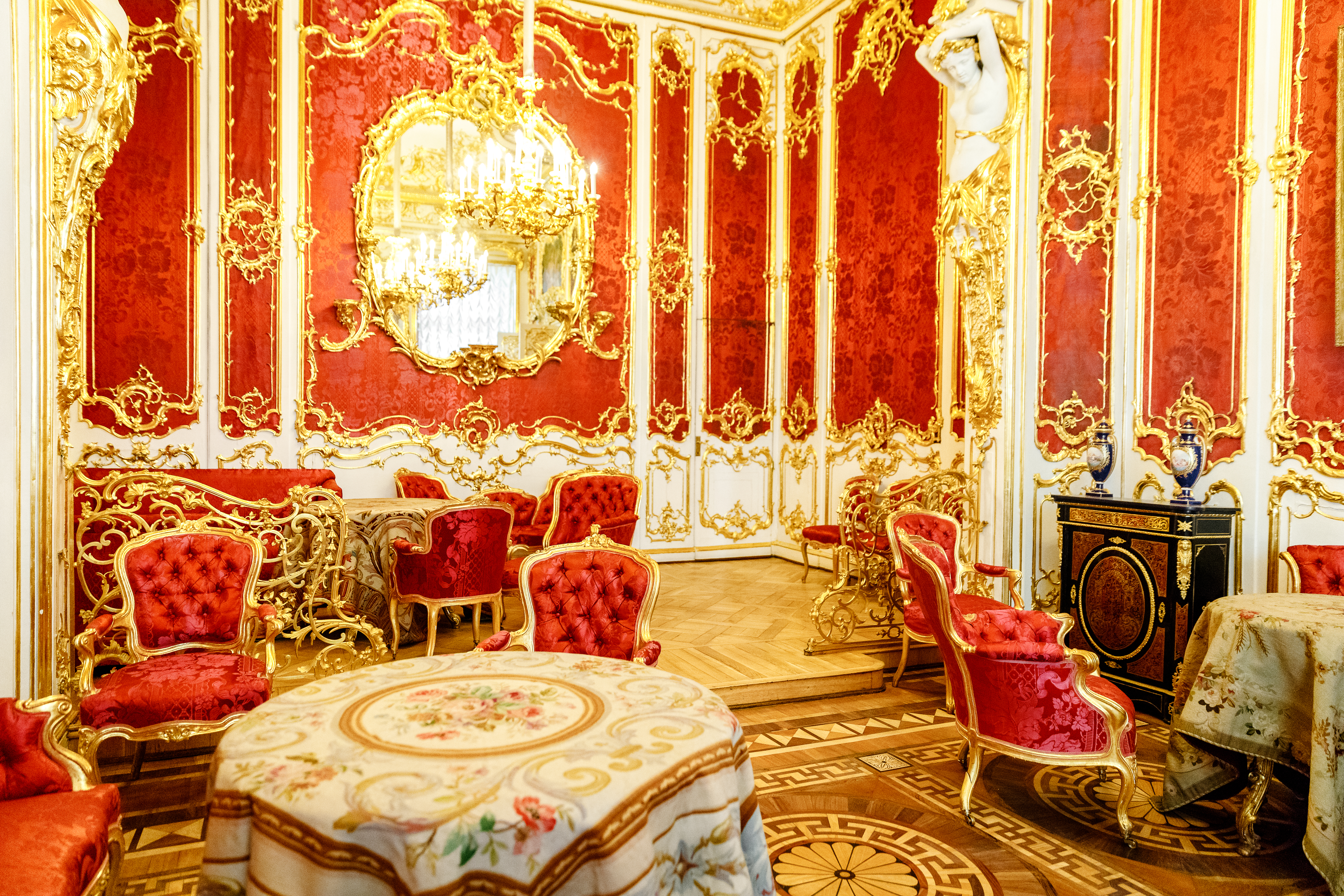 - Увидим деревянную библиотеку последнего императора Николая II и волшебный малиновый будуар императрицы Марии Александровы