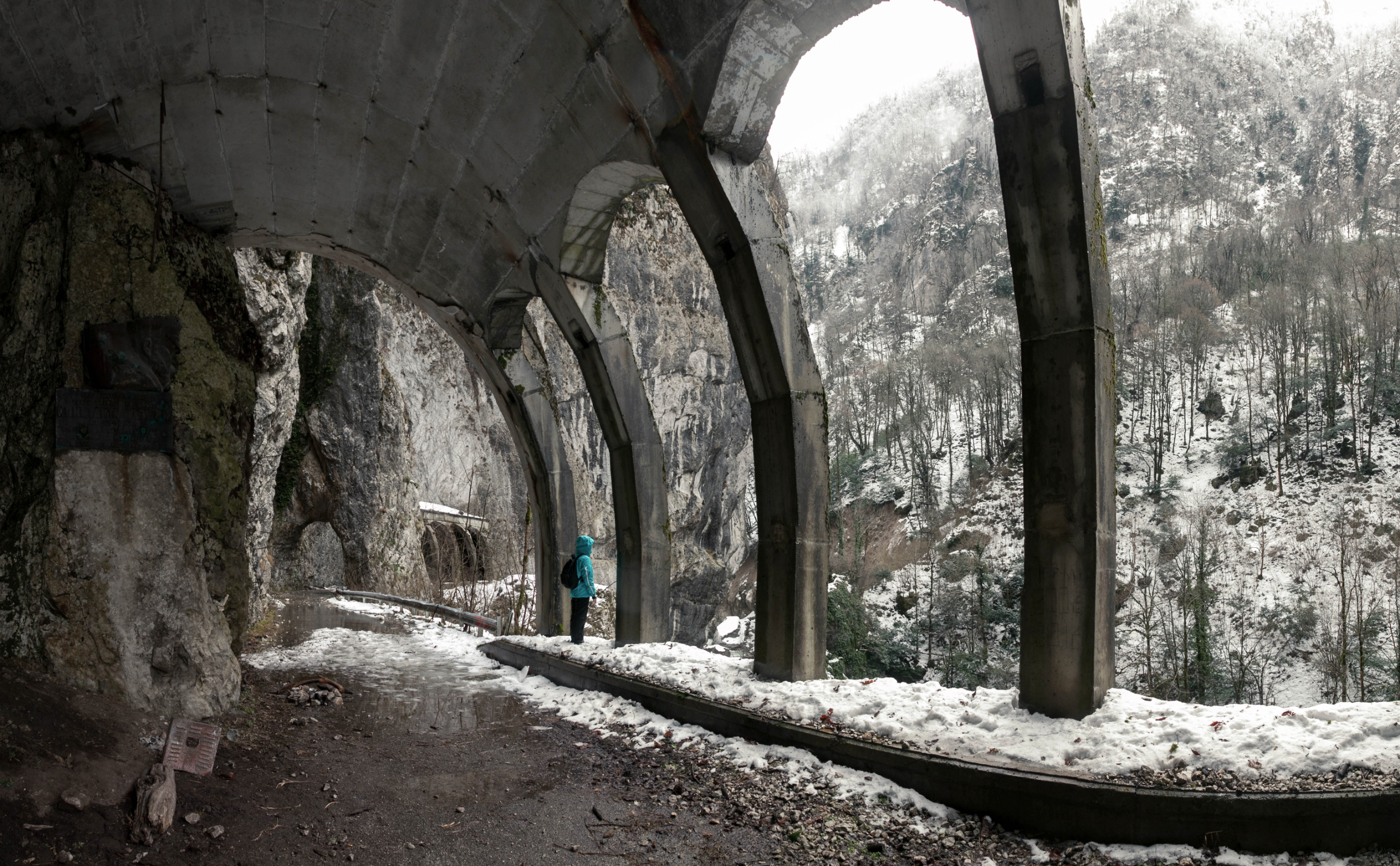 Несомненно, одним из самых загадочных инженерных творений конца позапрошлого века стало Краснополянское шоссе, построенное горным инженером Василием Константиновичем Константиновым. Вы узнаете историю строительства дороги «Пронеси, Господи!» и поразитесь смелости инженера, а также насладитесь живописной панорамой ущелья Ахцу и реки Мзымта. Вы поймете, почему ущелье прозвали глубочайшим шрамом, рассекающим лицо Кавказа и отметите сходство «Реберных» тоннелей со скелетами огромных китов. Пусть это не удивляет вас, ведь мы на дне верхнеюрского моря! Вряд ли можно найти более атмосферное место для съемок.