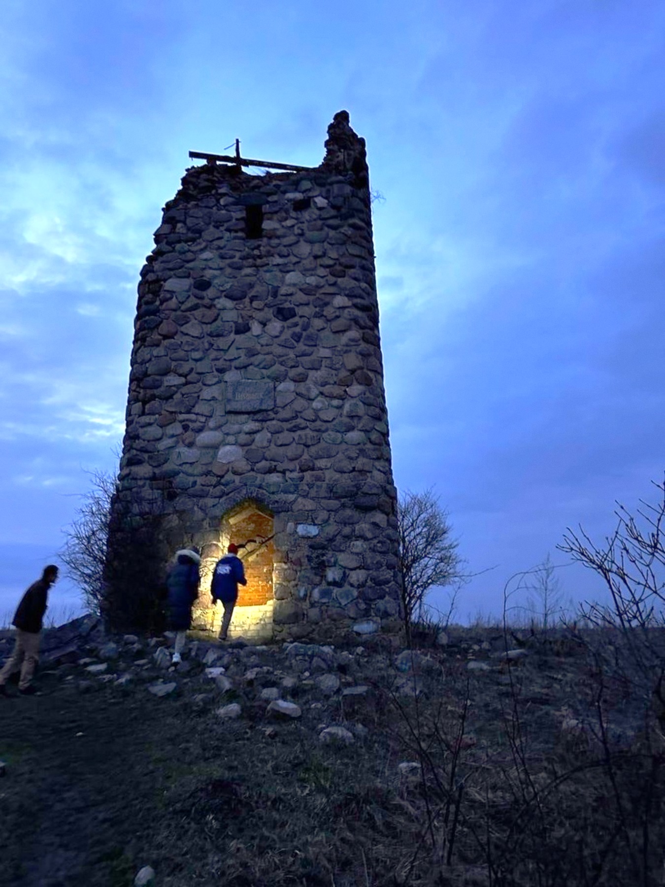 Башня Бисмарка, откуда с 25-метровой высоты открывается вид на ночной Черняховск.