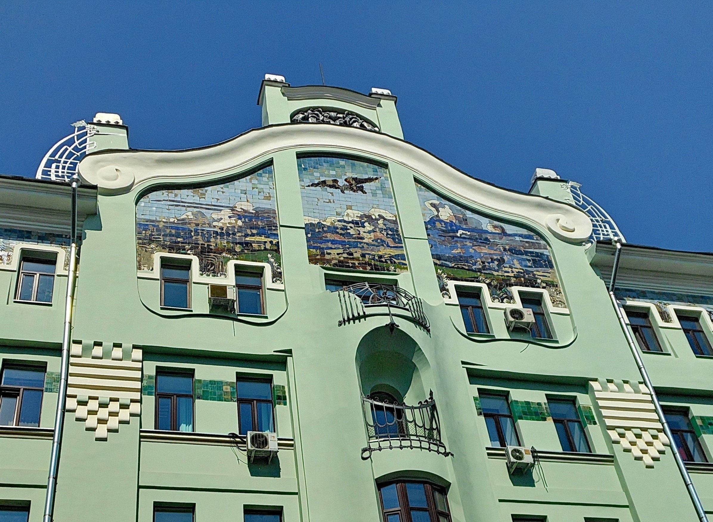 Доходный дом М. Сокол на Кузнецком мосту — рассмотрим красивое мозаичное панно на фасаде и посетим скрытый от посторонних глаз двор-колодец.
