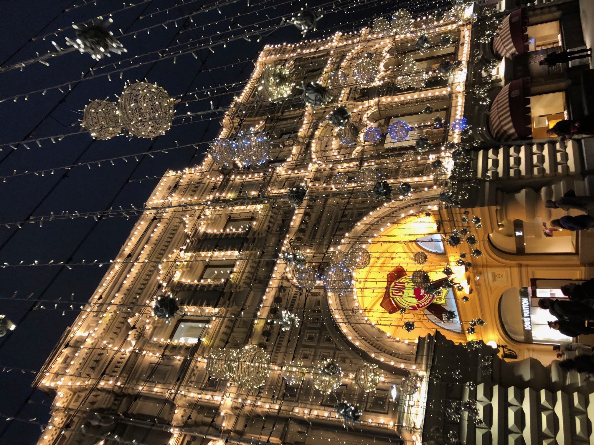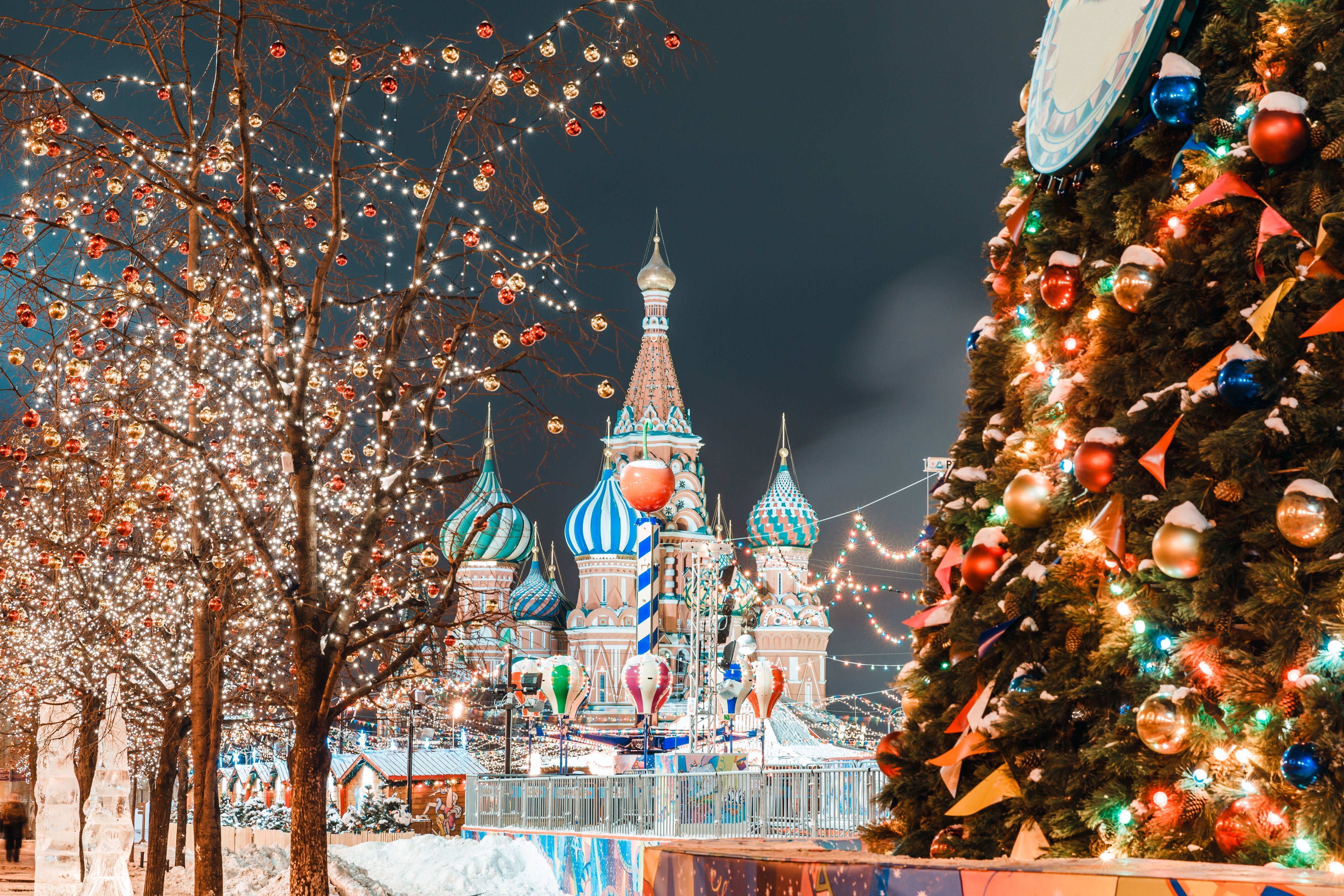 - Финальной точкой экскурсии станет Красная площадь, где вы сможете самостоятельно посетить новогоднюю ярмарку или покататься на коньках на легендарном ГУМ-катке