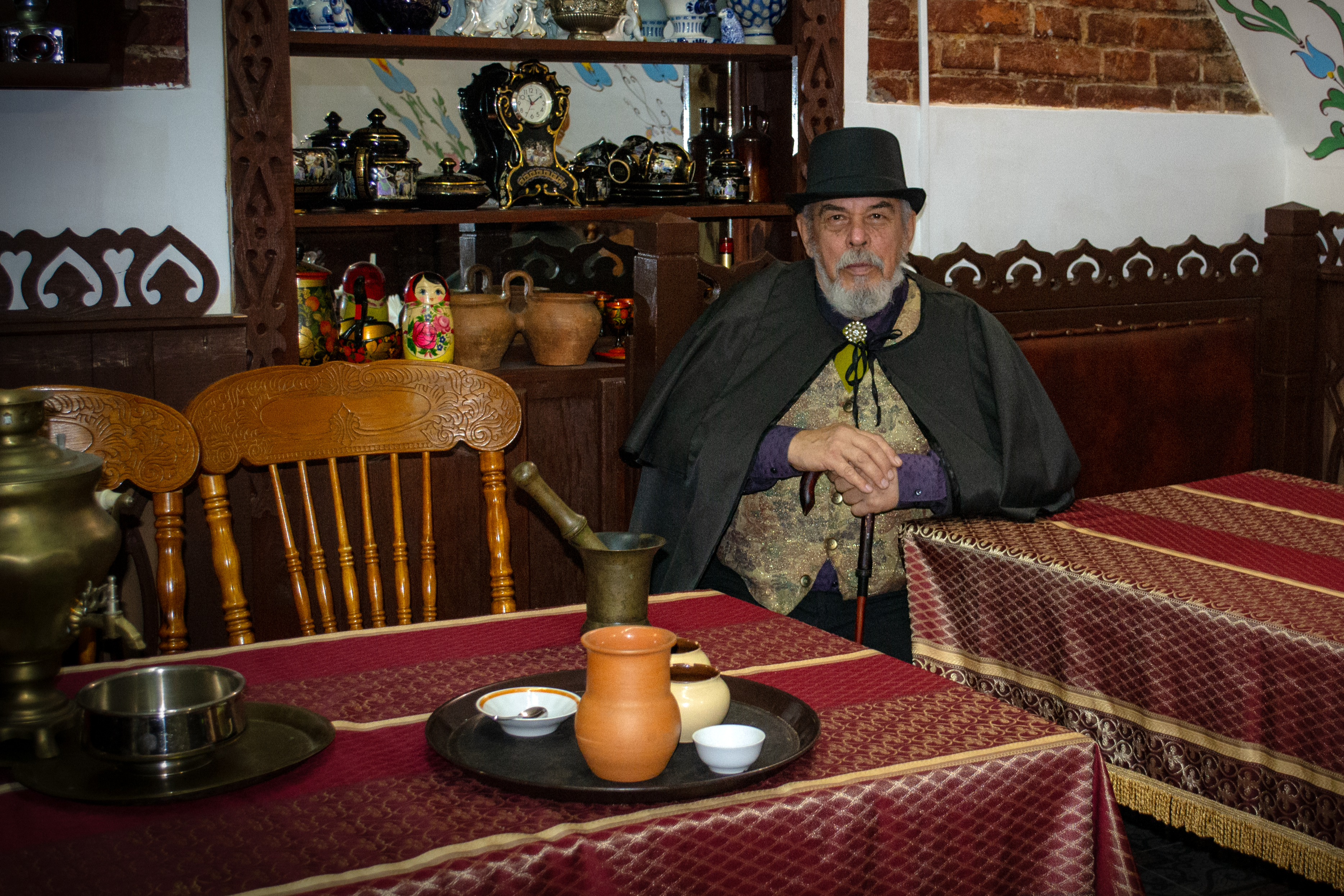 Потомок купцов из Калужской губернии Сергей Георгиевич Котельников и его супруга приглашают вас окунуться в историю и разделить душевный семейный обед в трактире «Русские традиции».
