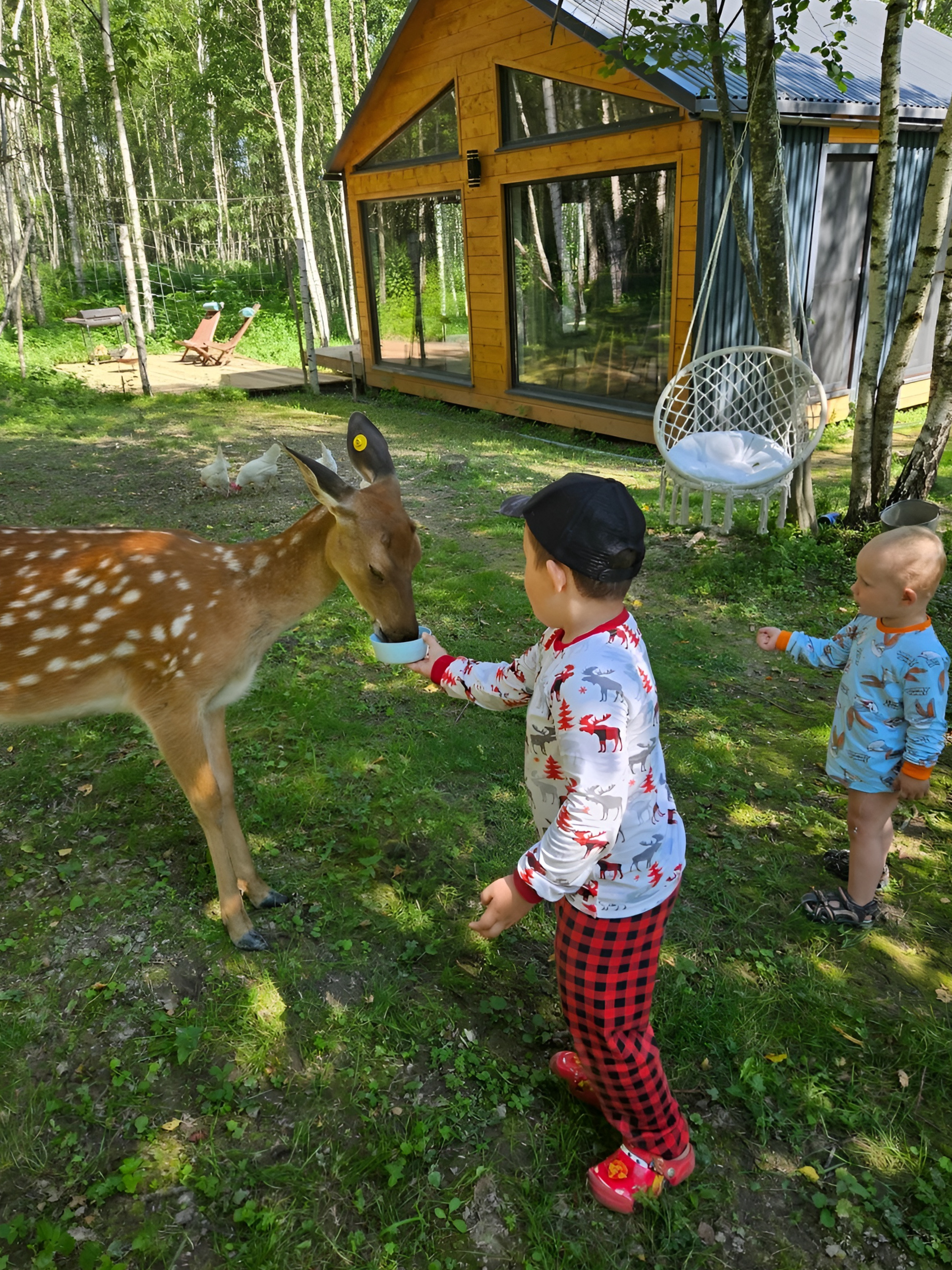 На ферме пятнистые олени живут в естественной среде, без решёток и крошечных загонов. Здесь можно понаблюдать за ними вблизи, покормить и сделать редкие фотографии. А заодно подружиться с другими обитателями — козами, кроликами и курами. Вы узнаете, как ухаживают за животными и какую пользу они приносят человеку.