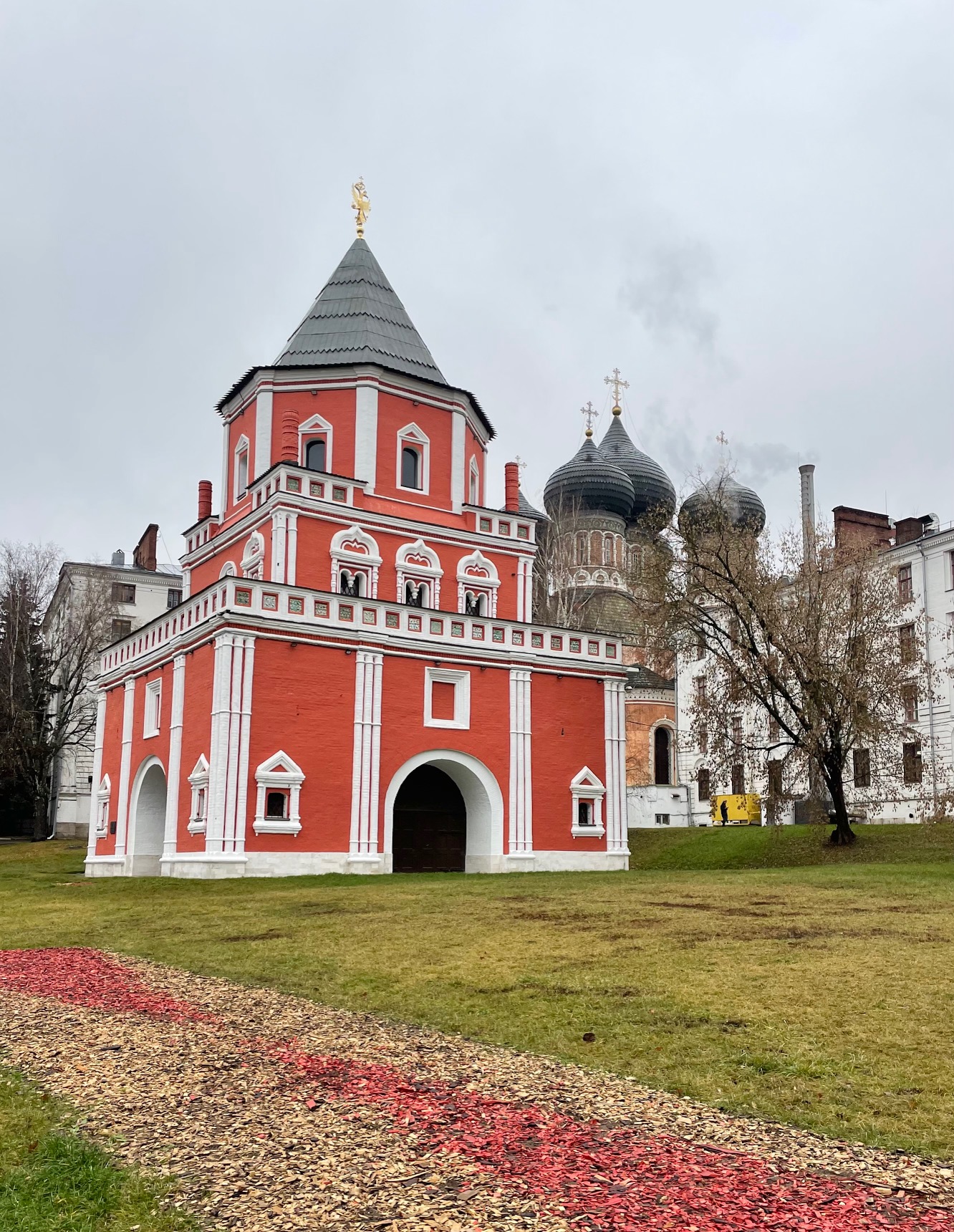 - Мостовая башня. Постройка 17 века, украшенная флюгером с двуглавым орлом, — свидетельница первых лет существования царской усадьбы. Почему башня так называется и где же мост? Будем разбираться!