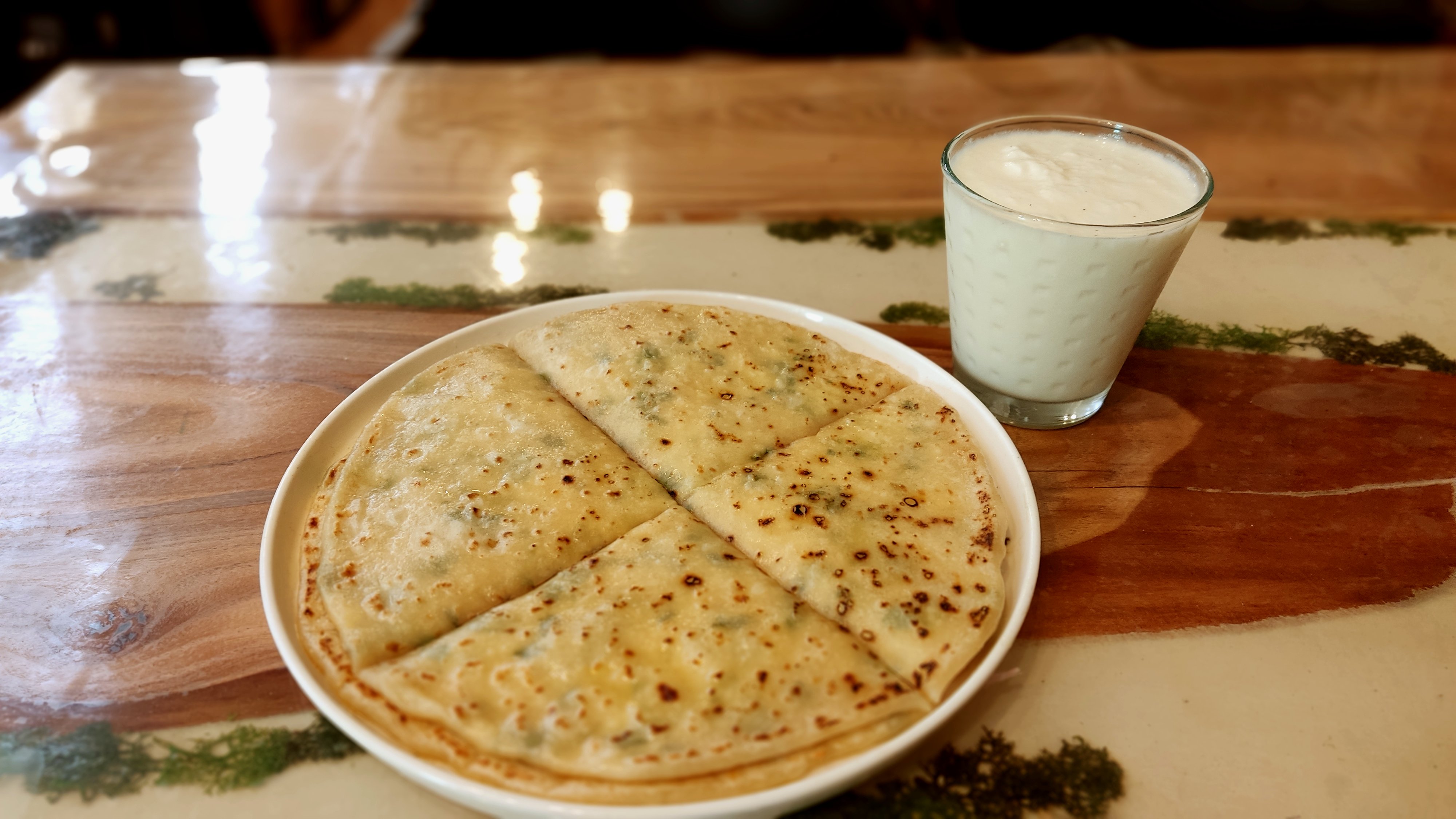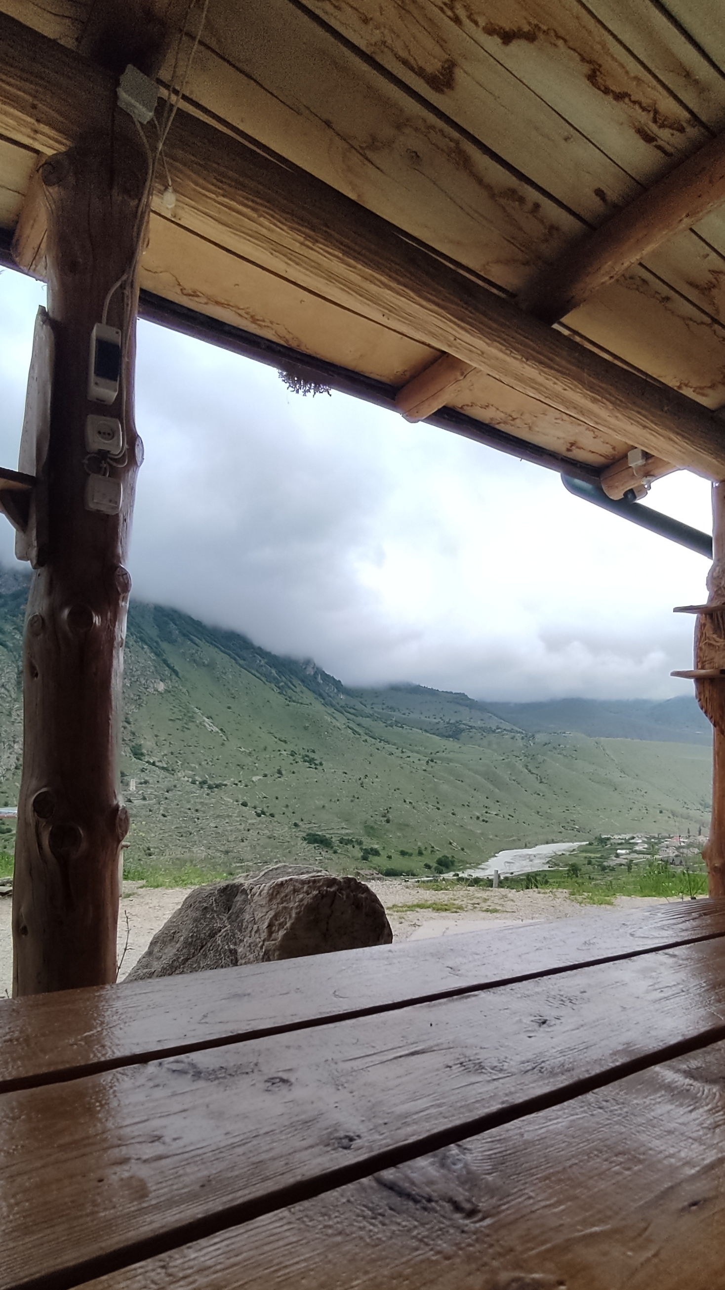Обед в кафе с видом на горы. Вы попробуете национальное блюдо балкарцев — хычины (лепёшки с сыром и картошкой).
