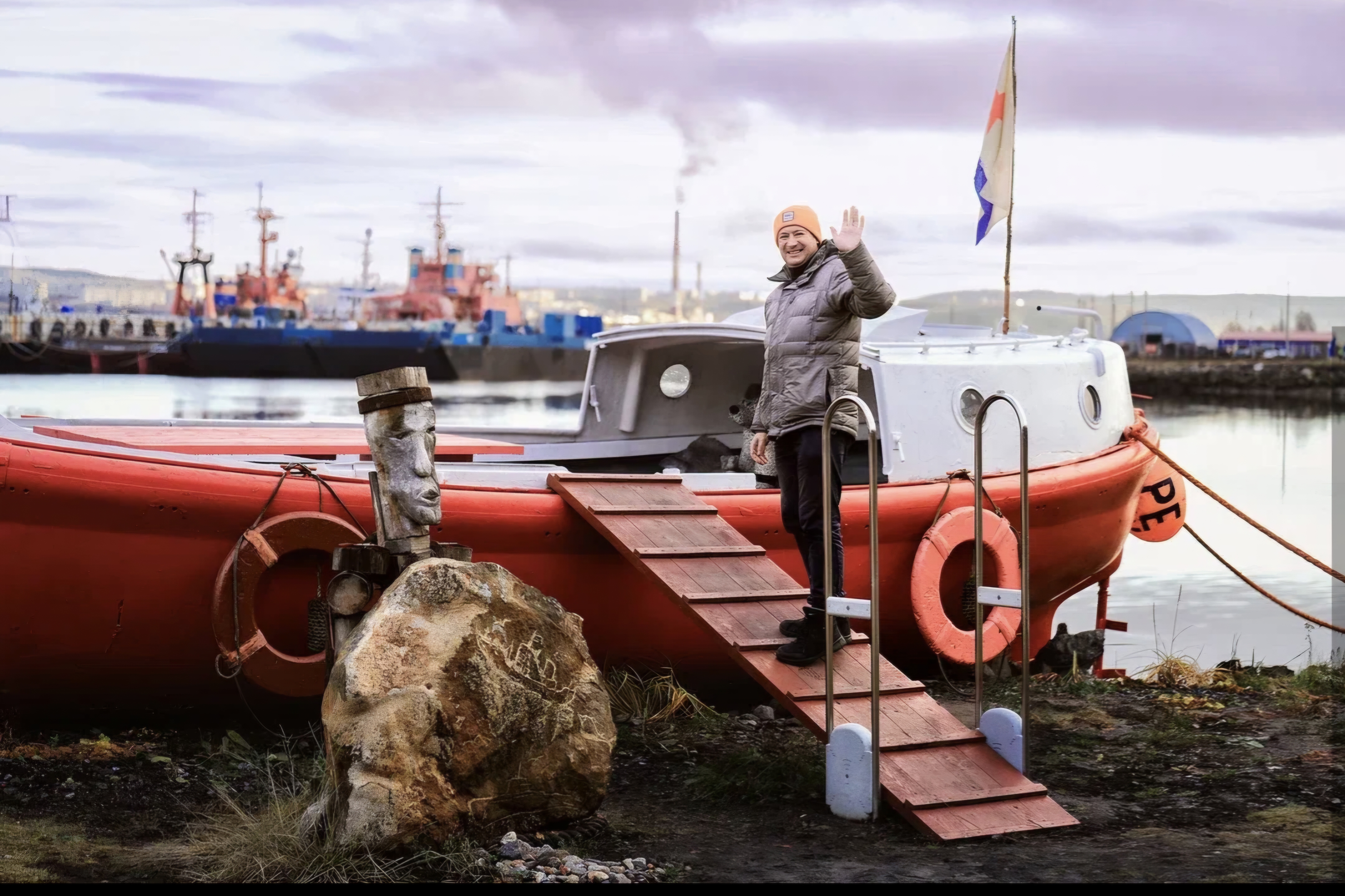 - Арктический пляж с расписными лодками